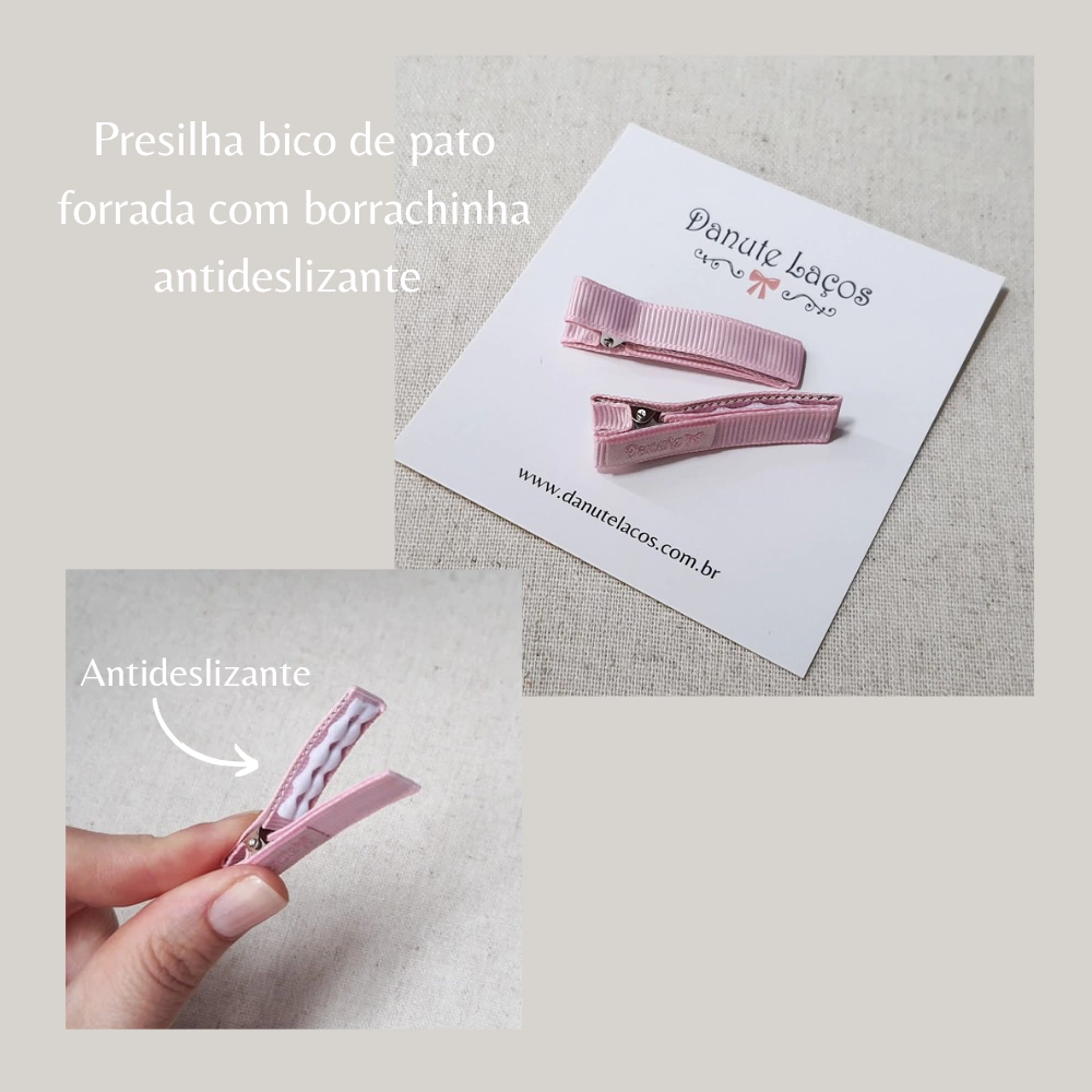 Fixação: Presilha forrada com borrachinha antideslizante.